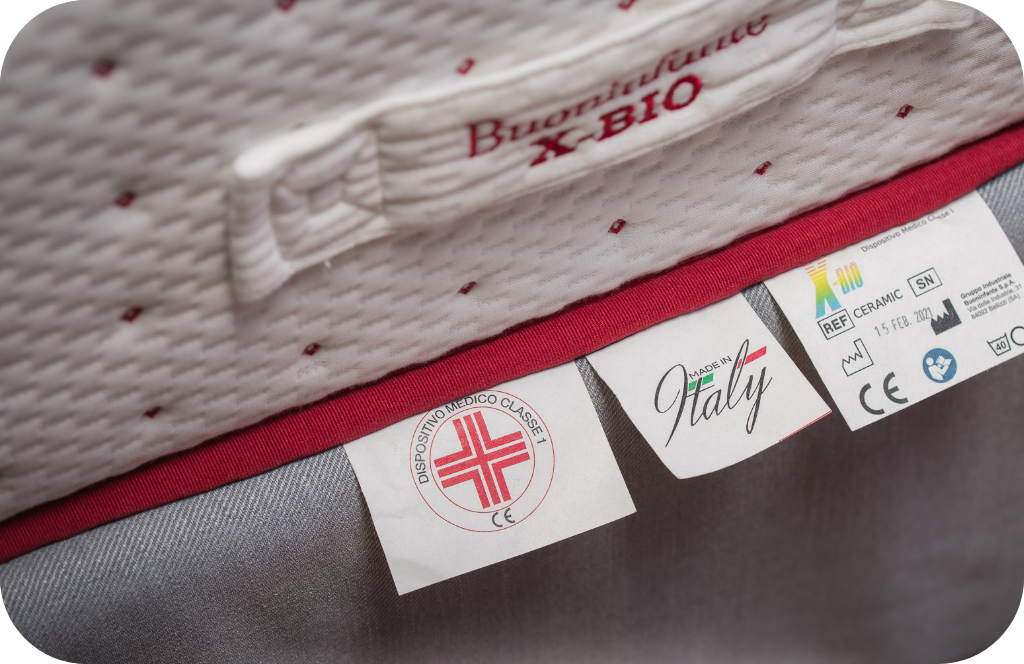 Un materasso X-BIO Dispositivo Medico di Classe 1 sostiene il corpo in modo ergonomico ed ortopedico, è idoneo alla prevenzione e al trattamento di mal di schiena e dolori cervicali e garantisce un riposo salutare e rigenerante. Inoltre, l’acquisto di un materasso X-BIO Dispositivo Medico dà diritto ad una detrazione fiscale del -19% per Spese Sanitarie in fase di dichiarazione dei redditi.