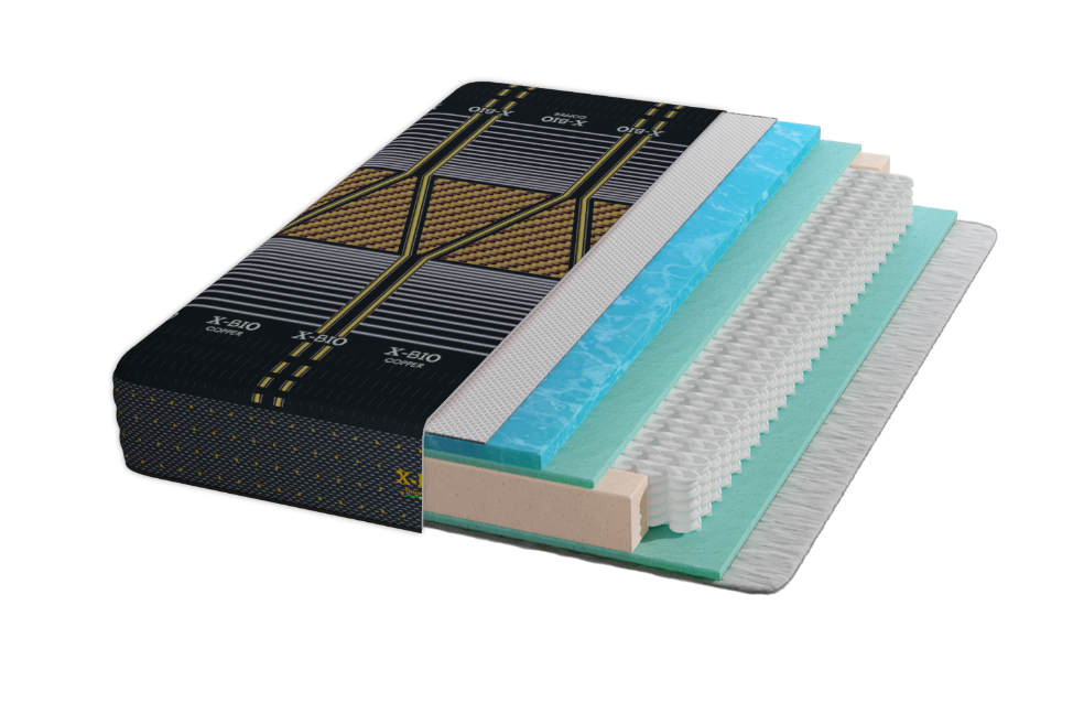 Un materasso X-BIO Copper in Memory Fresh offre un sostegno deciso e robusto, indicato specialmente per persone con un peso superiore ai 100-110kg o per chi desidera un sostegno rigido e compatto