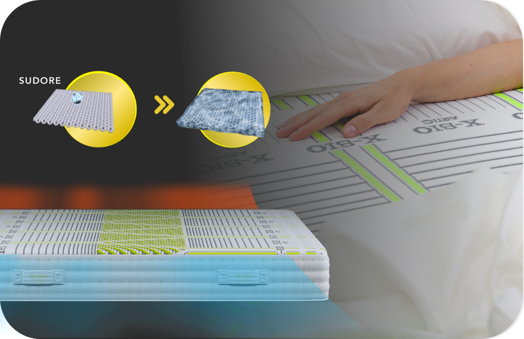 Il sistema intelligente X-BIO regola la temperatura corporea in tutte le stagioni dell’anno! Quando il corpo non ne ha bisogno - specialmente durante l’inverno – l’agente refrigerante non si attiva e il riposo è sempre confortevole e alla giusta temperatura.